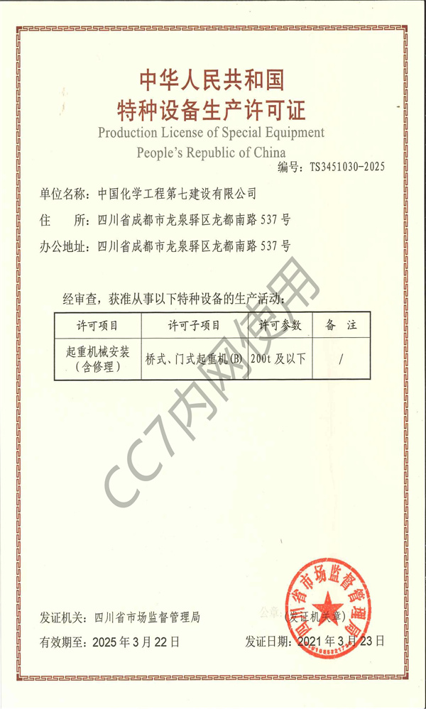 起重机械安装(含修理)许可证