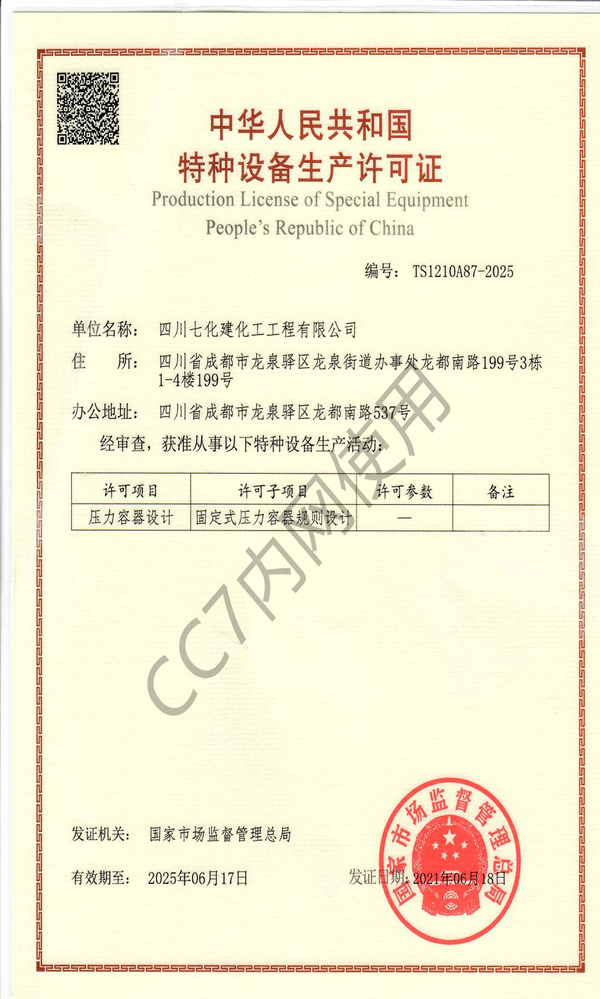 压力容器制造许可证