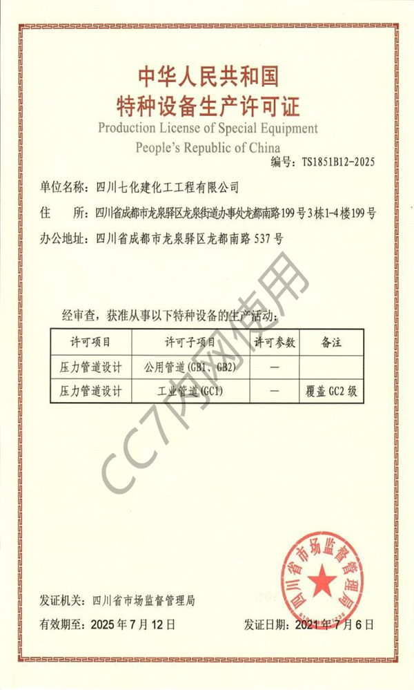 压力管道设计许可证